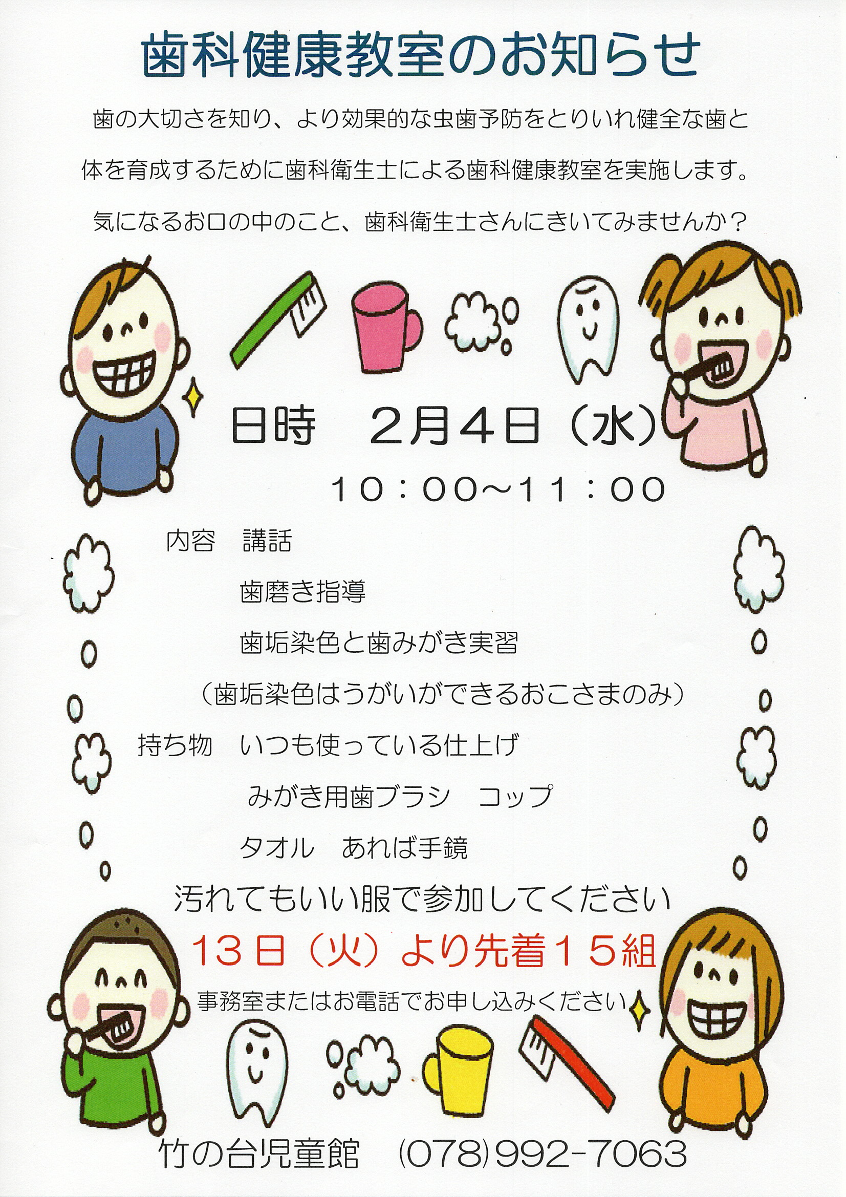 2月4日(水)歯科健康教室(幼児親子)要申込み