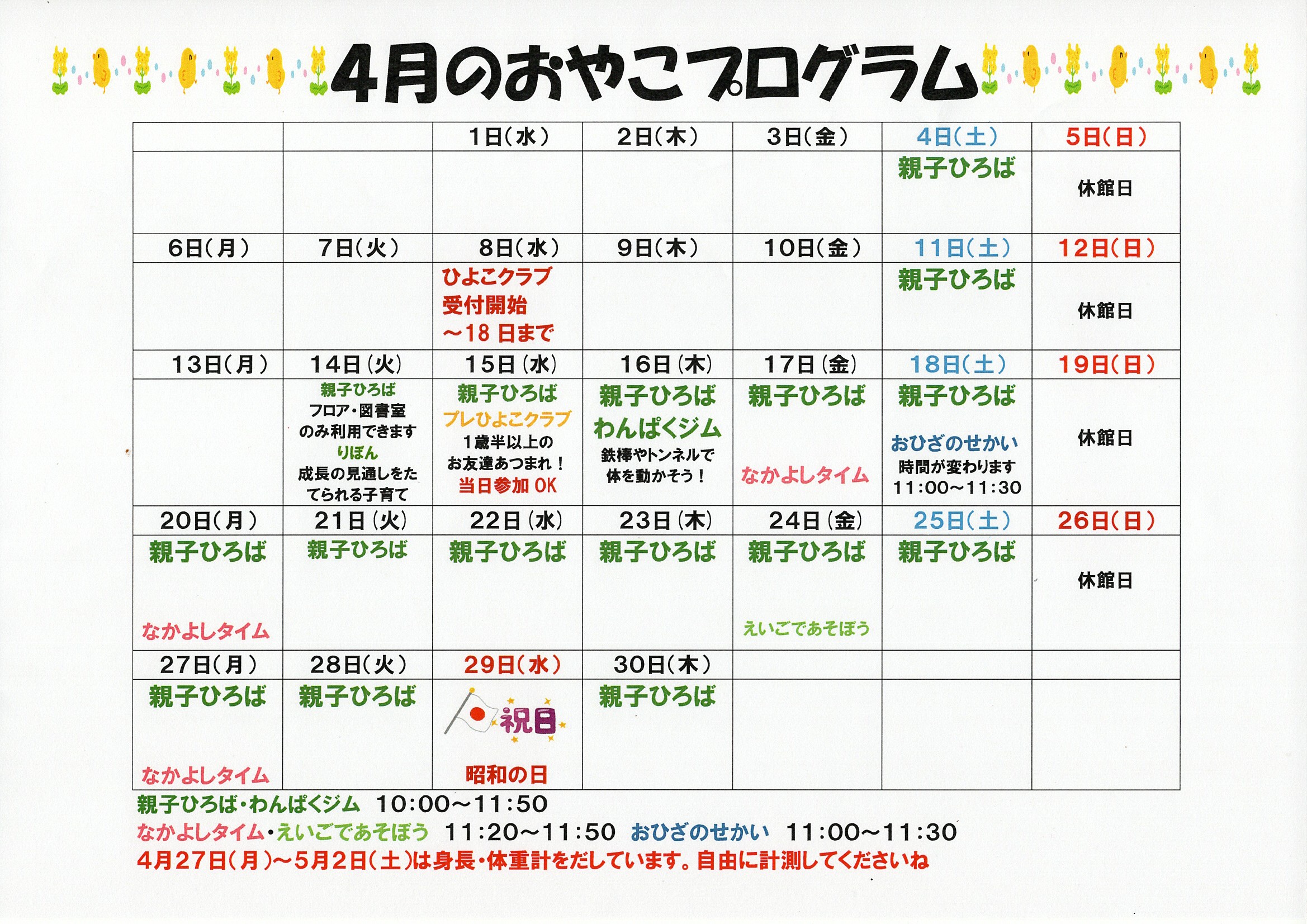 申込み:小学生対象 TEL申込み可能 4月15日(水)~申込み開始