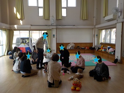 『フィールドオブゆう』の河田先生による今年2回目の親子ふれあいあそびでした!9月に行事をしていたので知っているお友達は上手にお手本もみせてくれていました!