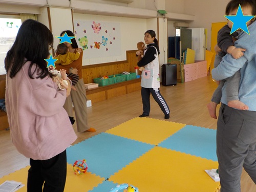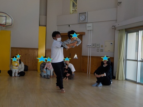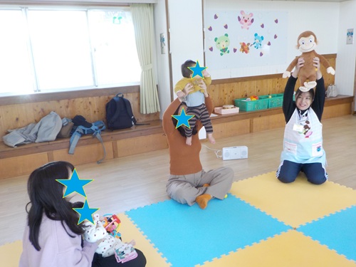 『フィールドオブゆう』の河田先生による今年2回目の親子ふれあいあそびでした!9月に行事をしていたので知っているお友達は上手にお手本もみせてくれていました!