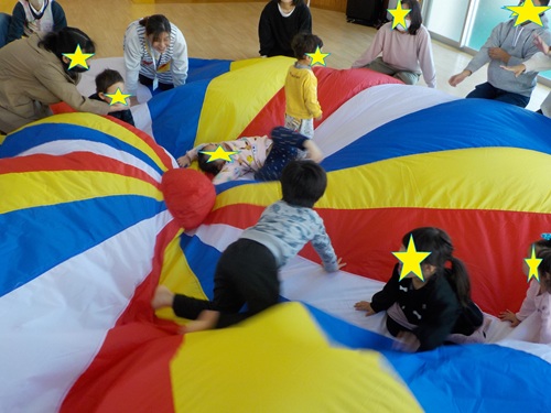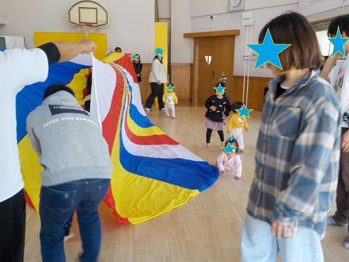講師の先生と一緒にリズム遊びやパネルシアター、パラバルーンとたくさんの出し物で楽しく過ごしました♪