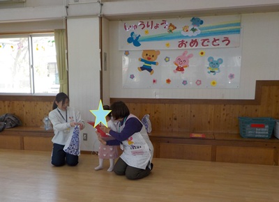 1年間水曜日は『ひよこクラブ』として通い続けた保護者の方、そしてこどもたちの修了の日です。どんな思い出があったかな・・これからこんな道に進んでいくよ・・などそれぞれの想いを共有した時間でした。